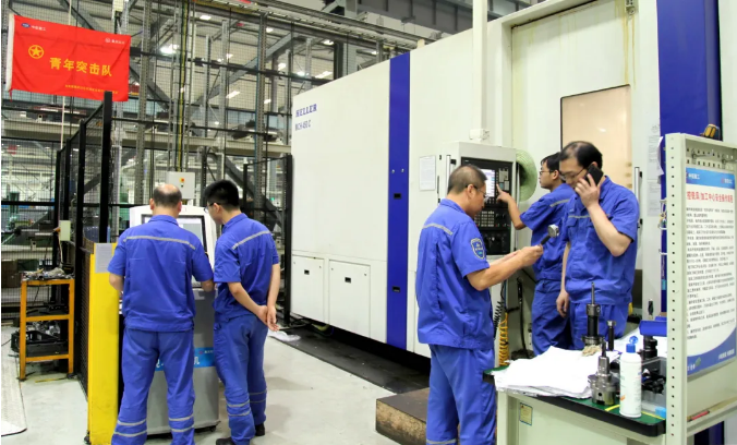凌晨三點的中國船舶集團旗下重慶紅江聯(lián)合廠房,室外,三伏天近40℃的高溫帶來的酷熱并沒有因入夜而降下來;室內(nèi),機床轟響燈火通明,一號車間最先進的三臺臥式加工中心開足馬力全速運轉(zhuǎn)。