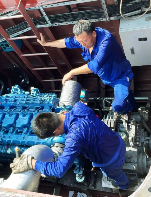在悶熱且狹小的機(jī)艙內(nèi),一個(gè)簡單的動(dòng)作,難度系數(shù)都要成倍增加,考驗(yàn)的不僅是船舶電工的體力,還有毅力。