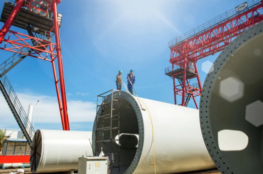 七月,在中國海裝大連莊河項(xiàng)目中,火熱的盛夏配上火熱的搶裝,運(yùn)維人員正在對(duì)24號(hào)機(jī)組做底段塔筒安裝前的準(zhǔn)備工作。