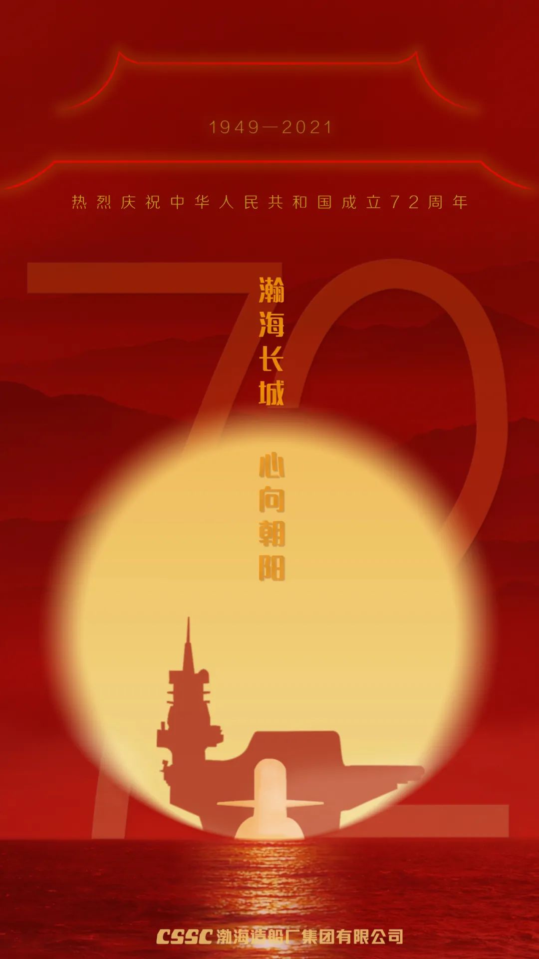 一輪紅日從國之滄海升起,捍衛(wèi)萬里海疆的海上長城深海逐浪,其后盾是強(qiáng)大的祖國母親,中國船舶渤船集團(tuán)祝新中國七十二歲生日快樂!強(qiáng)軍有我,強(qiáng)國有我!