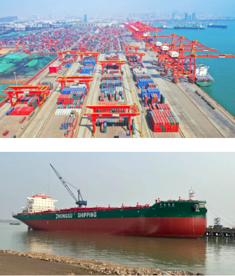 在公開照片中,與習(xí)近平總書記“同框”的,正是中國船舶集團(tuán)旗下武漢船機(jī)、七一六所參與建設(shè)的日照港順岸開放式全自動化集裝箱碼頭,以及上船院設(shè)計(jì)、汾西重工提供關(guān)鍵配套的4600箱集裝箱船“中谷南昌”號。