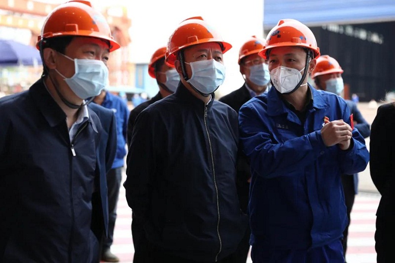 ????王江平一行深入車間實地考察了重點在制產(chǎn)品生產(chǎn)情況,認真聽取了武船集團積極參與疫情防控、有序推進復(fù)工復(fù)產(chǎn)和疫情影響等方面的情況匯報。