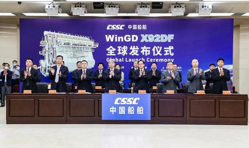 ????5月26日,由中國(guó)船舶旗下溫特圖爾發(fā)動(dòng)機(jī)有限公司(WinGD)自主研發(fā),上海中船三井造船柴油機(jī)有限公司建造,中船海洋動(dòng)力技術(shù)服務(wù)有限公司保障的目前世界最大船用雙燃料低速機(jī)WinGD X92DF正式向全球發(fā)布。中國(guó)船舶集團(tuán)董事長(zhǎng)雷凡培出席發(fā)布儀式并講話,總經(jīng)理?xiàng)罱鸪芍鞒謨x式。國(guó)家相關(guān)部委、地方政府、船級(jí)社、航運(yùn)公司、造船公司等有關(guān)領(lǐng)導(dǎo)和專家,中國(guó)船舶集團(tuán)副總經(jīng)理馮永強(qiáng)、孫偉、杜剛出席發(fā)布儀式。