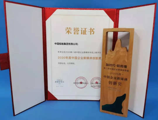 12月22日,由國(guó)務(wù)院國(guó)資委新聞中心、中央企業(yè)媒體聯(lián)盟聯(lián)合主辦的2020第八屆中國(guó)企業(yè)新媒體年會(huì)在北京舉行。本屆年會(huì)主題聚焦“融時(shí)代 · 新傳播”,中國(guó)船舶集團(tuán)有限公司因在“奮斗者”號(hào)融媒體報(bào)道中的創(chuàng)新表現(xiàn),榮獲“2020年度中國(guó)企業(yè)新媒體創(chuàng)新獎(jiǎng)”。