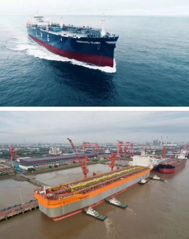 ——滬東中華、江南造船齊頭并進(jìn),共完工交付4艘全球最大2.3萬TEU雙燃料動力集裝箱船,在世界大型集裝箱船領(lǐng)域成功實(shí)現(xiàn)從跟隨到引領(lǐng)的歷史性跨越。