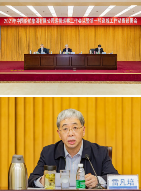 3月31日,中國船舶集團(tuán)有限公司召開2021年巡視巡察工作會議暨第一輪巡視工作動(dòng)員部署會。中國船舶集團(tuán)黨組書記、董事長、巡視工作領(lǐng)導(dǎo)小組組長雷凡培,紀(jì)檢監(jiān)察組組長、黨組成員、巡視工作領(lǐng)導(dǎo)小組副組長李佳穎出席會議并講話。