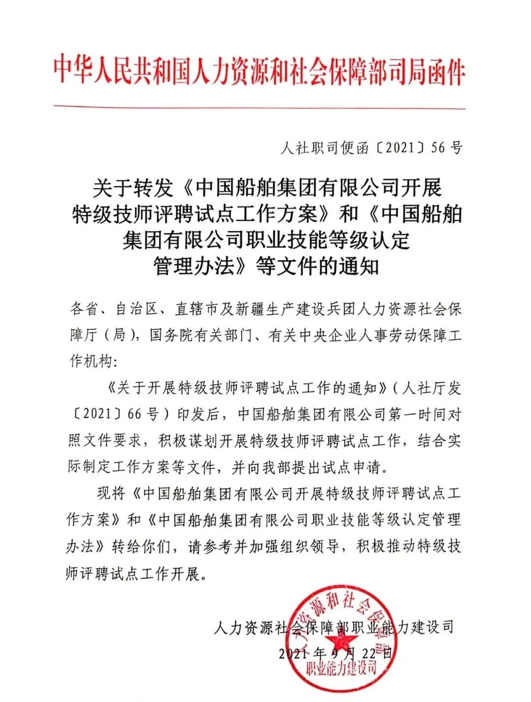 通知發(fā)布后,中國(guó)船舶集團(tuán)第一時(shí)間對(duì)照文件要求,積極謀劃開(kāi)展特級(jí)技師評(píng)聘試點(diǎn)工作,集團(tuán)公司黨組審議出臺(tái)《職業(yè)技能等級(jí)認(rèn)定管理辦法》,進(jìn)一步明確以“特級(jí)技師”為塔尖的六個(gè)技能等級(jí),第一時(shí)間制定特級(jí)評(píng)聘工作方案,積極向人社部申報(bào)特級(jí)技師評(píng)聘試點(diǎn)。同時(shí)部署了2021年特級(jí)技師評(píng)審工作,今年計(jì)劃增加80名左右特級(jí)技師。