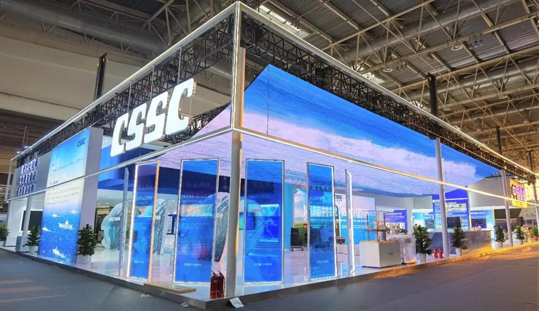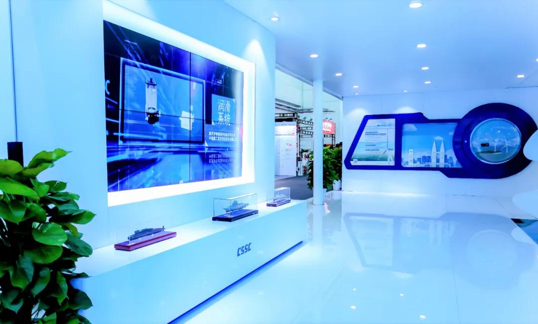 中國(guó)船舶集團(tuán)展臺(tái)摒棄了“傳統(tǒng)色彩矩陣”,用“深海藍(lán)”加 “風(fēng)機(jī)白”打造出大氣磅礴的開合式復(fù)合空間域,細(xì)節(jié)上則采用生態(tài)為先、大道至簡(jiǎn)、科技為尚三大設(shè)計(jì)語言,將“風(fēng)傳送”“海推動(dòng)”“碳排放”業(yè)務(wù)生態(tài)鏈條進(jìn)行了全方位的解構(gòu),吸引了眾多觀展人士駐足。