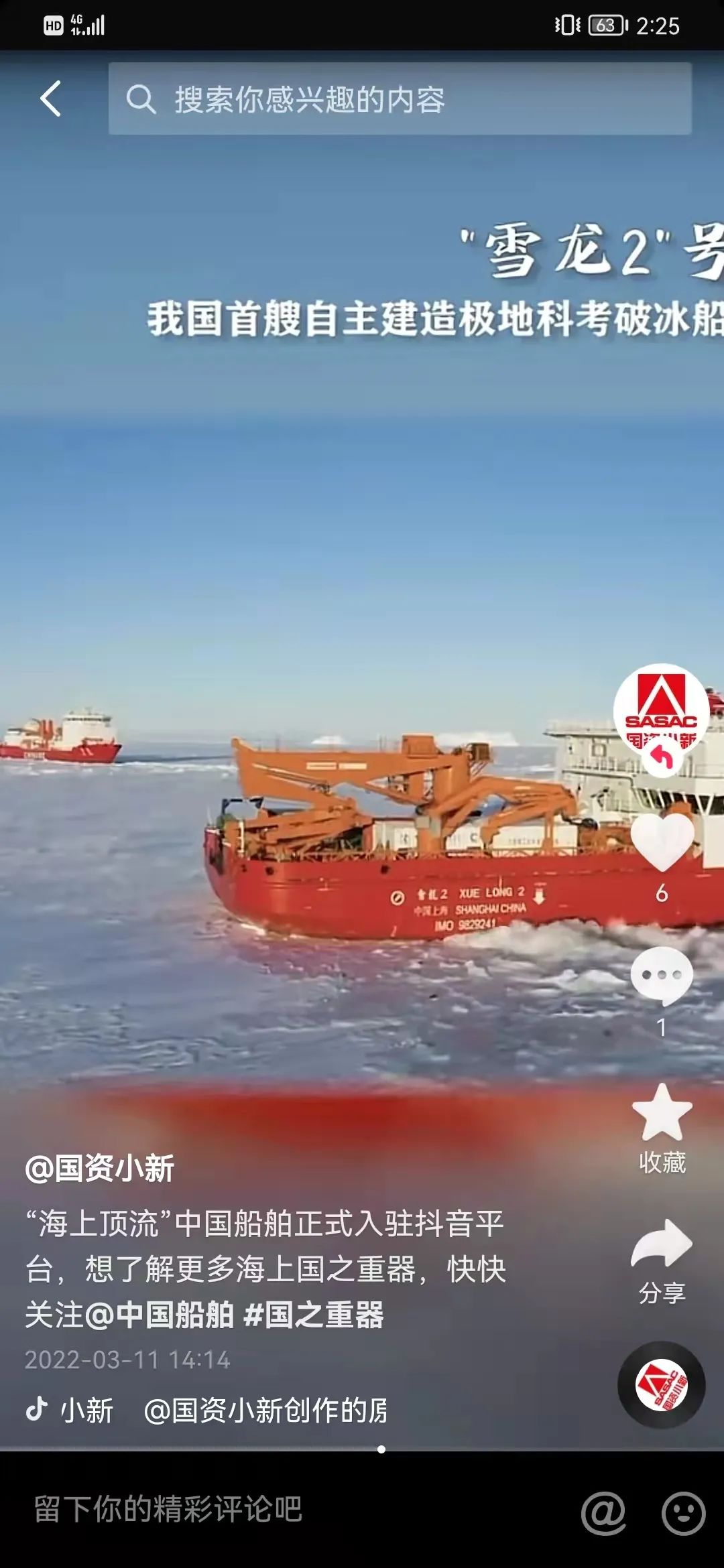 3月11日,中國船舶官方抖音號正式開通