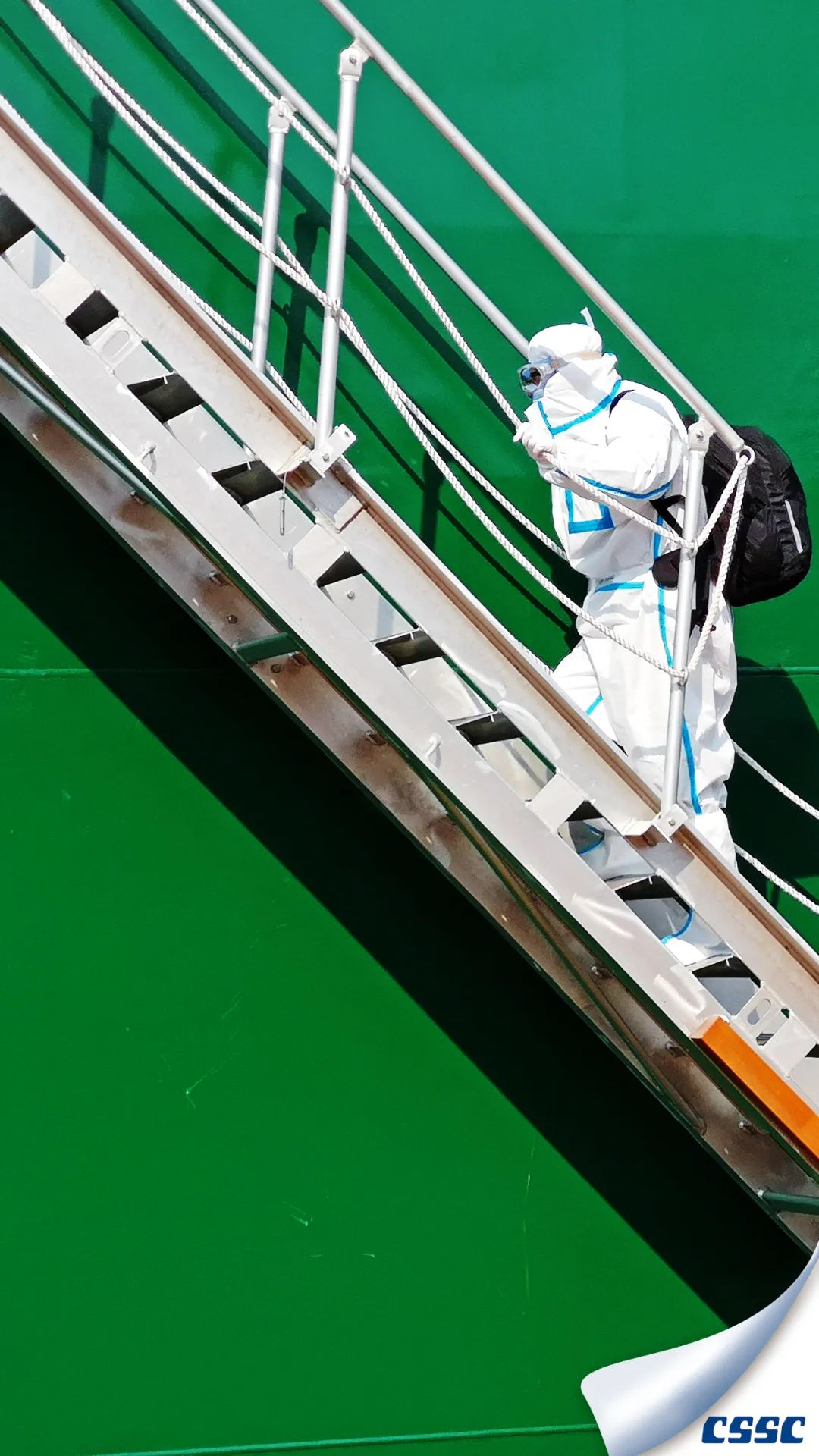 該片拍攝于中船澄西金山塢內(nèi)MARITIME VANESSA (HONGKONG) 船進(jìn)塢油漆涂裝和螺旋槳修理作業(yè)時(shí),創(chuàng)作主要利用船舶與現(xiàn)場作業(yè)人物大小形成超大反差,以獨(dú)特的視角展現(xiàn)了涂裝后新船的雄偉和迷人色彩。
