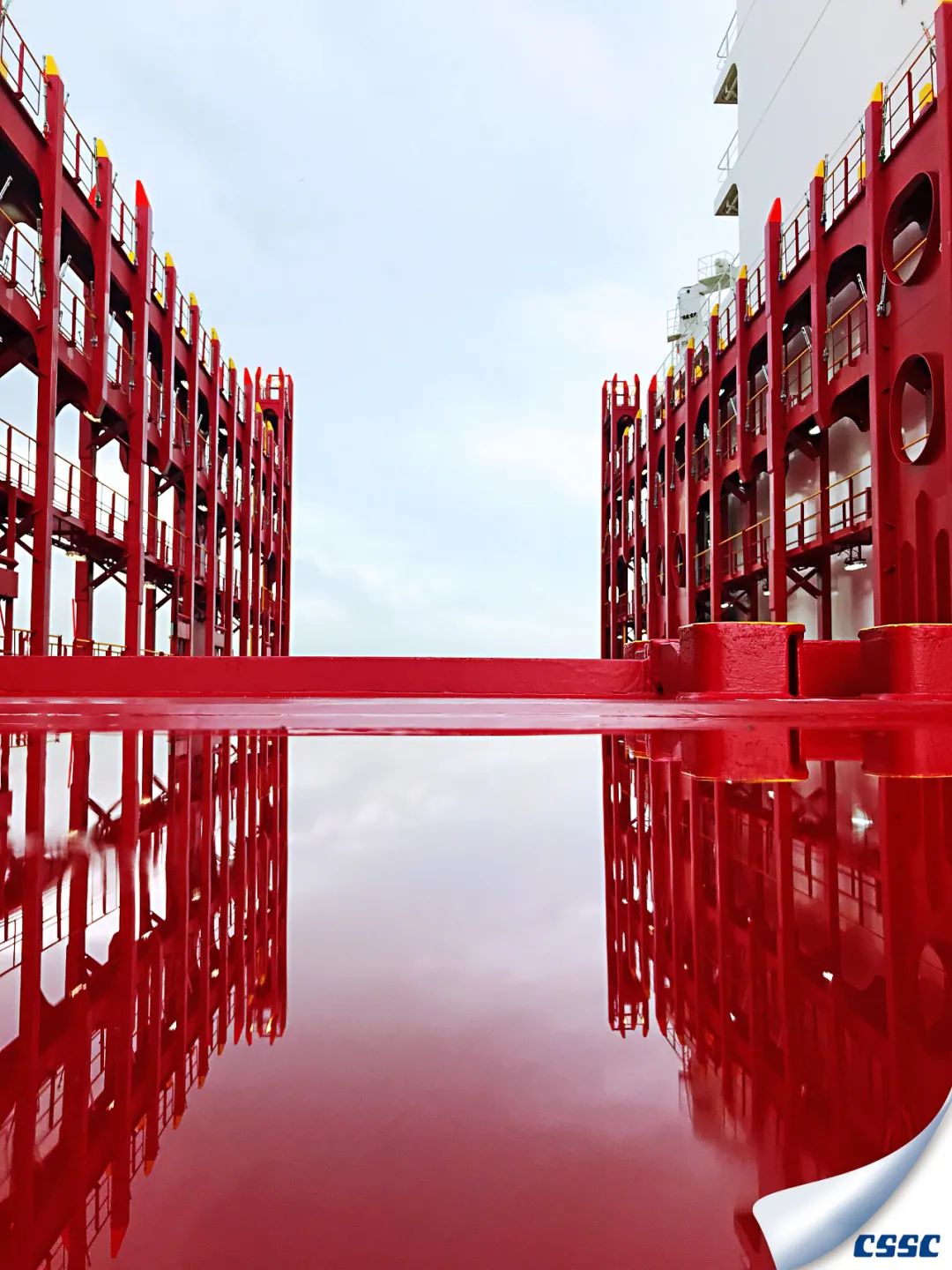 由七〇八所研發(fā)設(shè)計(jì)的20000TEU超大型集裝箱船試航期間,紅色的船體與倒影融為一體,充滿了夢幻色彩,寓意紅色基因在實(shí)現(xiàn)海洋強(qiáng)國夢的征程中愈發(fā)光彩奪目。