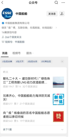 第一步點(diǎn)擊中國船舶頭像,進(jìn)入下方頁面