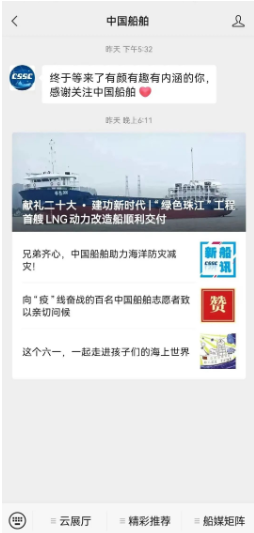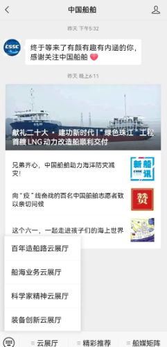 近日,中國船舶集團(tuán)四大云展廳入駐集團(tuán)公司微信公眾號(hào)。