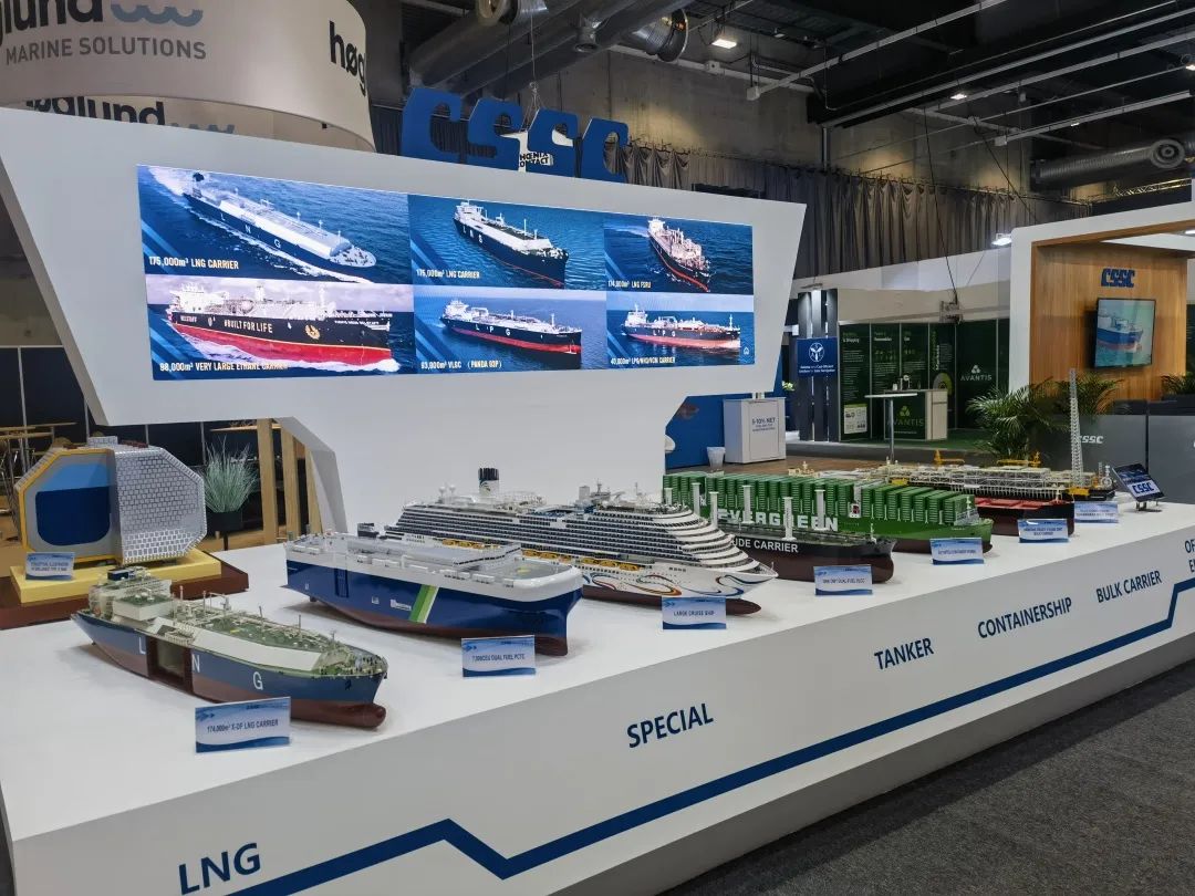本次展會(huì),中國船舶集團(tuán)積極踐行“走出去”發(fā)展戰(zhàn)略,緊盯目標(biāo)市場特點(diǎn)和需求,重點(diǎn)展示了近年來船舶海工及動(dòng)力機(jī)電產(chǎn)品在綠色、低碳、環(huán)保方面取得的最新進(jìn)展和相關(guān)成果,包括全球首制7500立方米液態(tài)二氧化碳運(yùn)輸船、17.4萬立方米大型LNG運(yùn)輸船、7000CEU雙燃料汽車滾裝船、23000TEU超大型雙燃料集裝箱船、21萬噸氨燃料散貨船、30萬噸級FPSO、全球首艘10萬噸級智慧養(yǎng)殖工船,以及 12X92DF雙燃料低速機(jī)、LNG供氣系統(tǒng)、船用碳捕捉系統(tǒng)等。集團(tuán)公司展臺吸引了眾多國內(nèi)外知名船東、船級社、設(shè)備廠商等到訪觀摩,交流了當(dāng)前市場熱點(diǎn)并探討了未來合作機(jī)遇。
