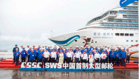 現(xiàn)場舉行了簡短的歡迎儀式。溫剛宣布中國首制大型郵輪完工試航所有驗證項目全部達(dá)標(biāo),試航任務(wù)圓滿完成。
