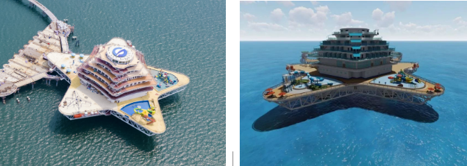 以濱海城市為依托,該方案重點(diǎn)建設(shè)需求旺盛、基礎(chǔ)好、見(jiàn)效快的“海洋文旅+深海養(yǎng)殖+海上風(fēng)電+海洋信息管網(wǎng)”4個(gè)要素單元,釋放旅游、養(yǎng)殖、綠色能源耦合效應(yīng)。綜合體采用模塊化設(shè)計(jì)、區(qū)域化協(xié)同部署,由濱海向深遠(yuǎn)海帶狀輻射,布局建設(shè)游輪游艇群、養(yǎng)殖文旅平臺(tái)、深海養(yǎng)殖產(chǎn)業(yè)園、分布式海上風(fēng)電場(chǎng)及智能微電網(wǎng)、深海移動(dòng)養(yǎng)殖工廠和海洋信息管網(wǎng)等風(fēng)漁文旅結(jié)合項(xiàng)目。以郵輪游艇連接海上設(shè)施,構(gòu)建海上旅游娛樂(lè)交通網(wǎng),以中小型郵輪航線實(shí)現(xiàn)沿海城市綜合體間串聯(lián),構(gòu)建沿海城市海上旅游觀光帶,同時(shí)培育郵輪與康養(yǎng)休閑岸海互動(dòng)融合模式,捕捉、帶動(dòng)、滿足多元化潛在消費(fèi)需求,打造風(fēng)漁文旅等一二三產(chǎn)業(yè)融合新業(yè)態(tài),形成沿海藍(lán)色海洋經(jīng)濟(jì)帶。