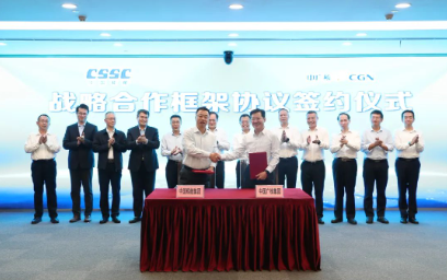 11月3日,中國船舶集團(tuán)有限公司與中國廣核集團(tuán)有限公司在上海簽訂戰(zhàn)略合作協(xié)議。中國船舶集團(tuán)黨組副書記、總經(jīng)理?xiàng)罱鸪?,中廣核黨委副書記、總經(jīng)理高立剛出席簽約儀式。中國船舶集團(tuán)黨組成員、副總經(jīng)理盛紀(jì)綱,中廣核黨委常委、副總經(jīng)理龐松濤分別代表雙方在協(xié)議上簽字。簽約前,雙方觀看了兩家企業(yè)宣傳片,并就進(jìn)一步加強(qiáng)溝通交流、深化多領(lǐng)域合作進(jìn)行了深入探討。