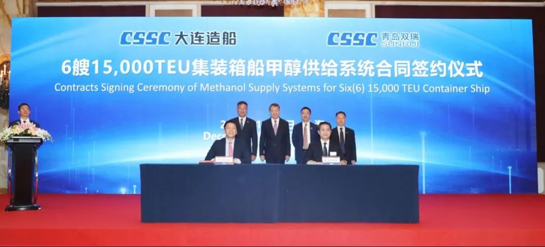 簽約儀式上,外高橋造船、中船貿(mào)易與Seaspan、現(xiàn)代Glovis簽署了6+4艘10800車LNG雙燃料PCTC船項(xiàng)目;廣船國際、中船貿(mào)易與HMM、現(xiàn)代Glovis簽署了6+4艘10800車LNG雙燃料PCTC船項(xiàng)目;北海造船、中船貿(mào)易與北銀金租、山東海運(yùn)簽署了4艘325000噸超?型甲醇雙燃料礦砂船項(xiàng)目;江南造船、中船貿(mào)易與太平洋氣體簽署了3艘99000方VLEC船項(xiàng)目;黃埔文沖、中船貿(mào)易與Benelux公司簽署了2+1艘48000方LPG船項(xiàng)目;中船澄西、中船貿(mào)易與工銀金租簽署了4艘82600噸散貨船項(xiàng)目;大連造船與七二五所青島雙瑞簽署了15000TEU集裝箱船甲醇供應(yīng)系統(tǒng)項(xiàng)目。