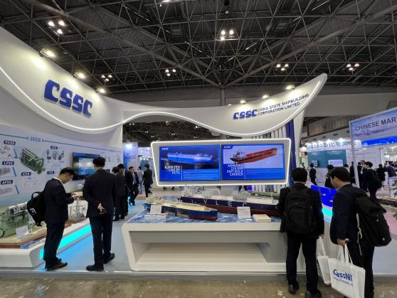 此次參展是集團(tuán)公司首次以整體形象亮相日本東京國(guó)際海事展,以“共筑未來(lái)”為參展主題,設(shè)置集團(tuán)總體區(qū)、低碳航運(yùn)解決方案區(qū)、低碳環(huán)保配套設(shè)備區(qū)、未來(lái)船型區(qū)共4個(gè)展示區(qū)域,重點(diǎn)展示了引領(lǐng)行業(yè)發(fā)展的新一代船舶產(chǎn)品、“綠色、智能”的配套設(shè)備,以及面向未來(lái)市場(chǎng)需求的船型設(shè)計(jì)方案,充分彰顯中國(guó)船舶集團(tuán)的國(guó)際化品牌形象和引領(lǐng)國(guó)際船舶科技發(fā)展的創(chuàng)新活力。