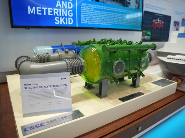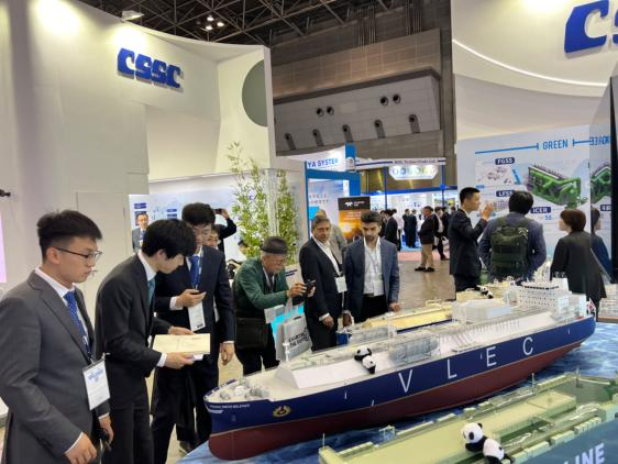 展會(huì)期間,國(guó)產(chǎn)大型郵輪、17.4萬(wàn)立方米LNG船、8600車LNG雙燃料PCTC、9.9萬(wàn)立方米VLEC、WinGD 9X92DF-2.0(-iCER)主機(jī)、船用LNG 供氣系統(tǒng)、船用碳捕捉系統(tǒng)、大口徑岸基智能裝卸系統(tǒng)等代表性產(chǎn)品悉數(shù)亮相,獲得海外市場(chǎng)高度關(guān)注。