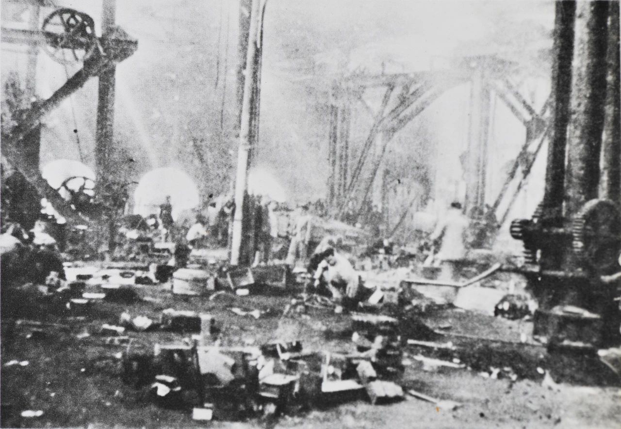 1949年5月上海,雖然江南造船所經(jīng)歷了英勇的護廠斗爭,但此時的船塢、廠房、設備,均已遭受到嚴重的破壞。