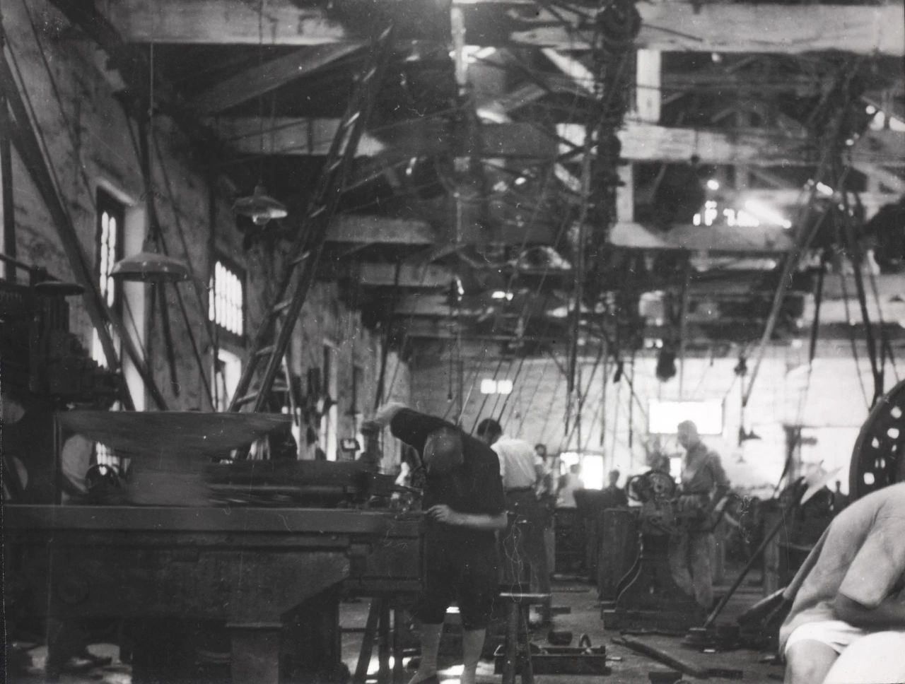 1934年武漢,解放前,沒有產(chǎn)線的概念,全部利用張之洞早年開辦的紡紗局廠房,撥用了其他廠的舊機床設備,進行手工作坊式生產(chǎn)。