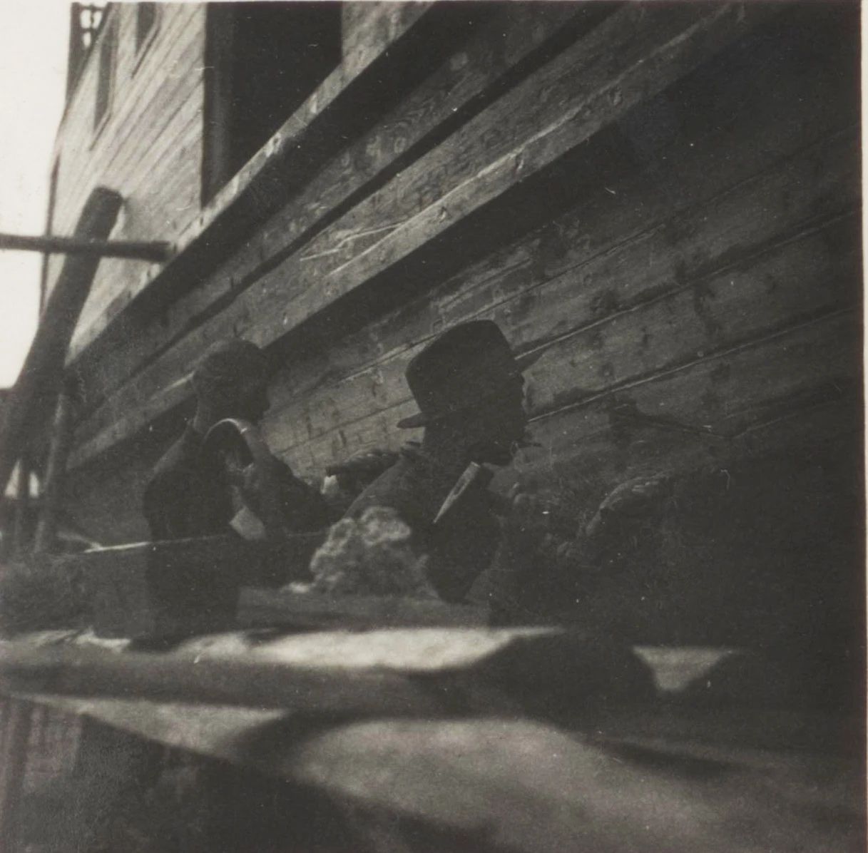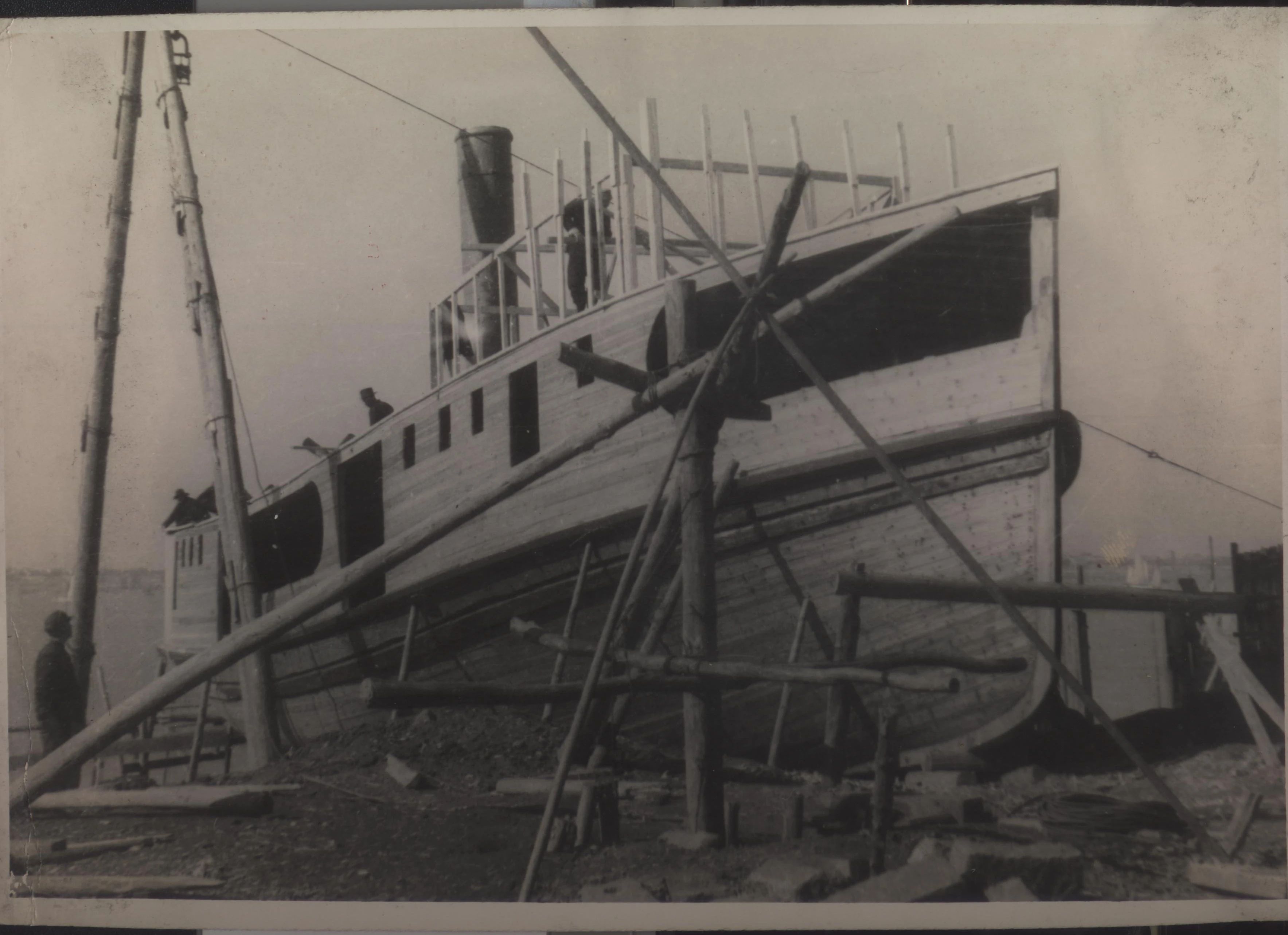1934年武漢,上世紀30年代,武昌造船成立之初,工人們以手工作業(yè)“敲敲打打”形式開展修造船業(yè)務。修造的船只大多為100~300噸、鋼肋骨與木殼結(jié)構(gòu),僅有少量是鋼鉚接船體。建造的船只只能在長江上航行跑跑運輸。為了生存和救國,船廠還建造一些農(nóng)用機械器具、槍支,以輔助民生、支援抗日。