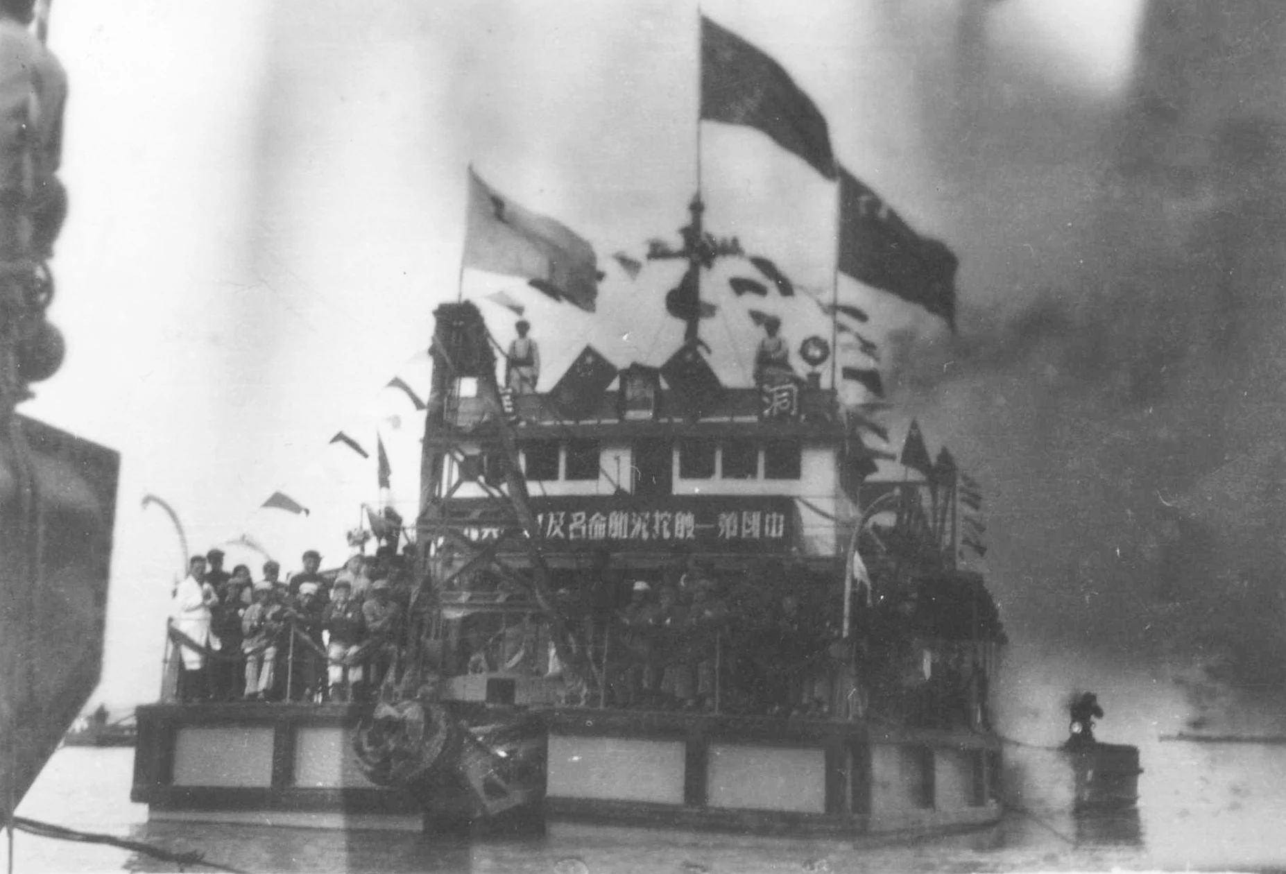1949年7月上海,1949年7月23日,江南造船所舉行“職工慶功大會”。上海市市長兼軍管會主任陳毅、副市長曾山、華東海軍司令員張愛萍、上海市總工會主席劉長勝等出席了大會。會上總結(jié)修復廠房設備的經(jīng)驗,宣布恢復生產(chǎn)表彰有功人員。全所有 134人被評為一、二、三等功臣受到表彰。