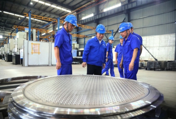 王國強深入科研生產一線,調研了相關車間、實驗室、勞模創(chuàng)新工作室,察看了智能制造中心、重點產品、相關技術進展;慰問了勞模工匠、一線員工,與他們就現場管理看板優(yōu)化、工藝改善等交流互動,勉勵他們健康生活、快樂工作,叮囑相關單位負責人要做好防暑降溫工作;聽取了相關二級管理單位生產經營、深化改革、科技創(chuàng)新、人才培養(yǎng)、黨的建設等方面情況匯報。