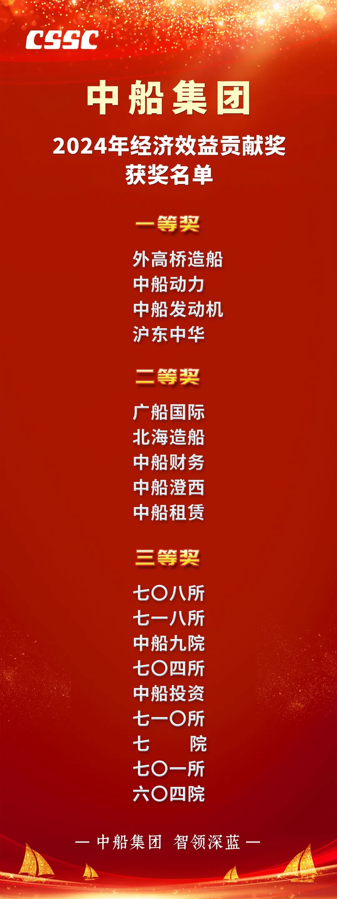 2024年,面對復(fù)雜多變的外部環(huán)境和不確定因素,中國船舶集團有限公司各二級管理單位著力拓市場、強管理、抓改革、增效益,實現(xiàn)了量的合理增長、質(zhì)的有效提升,整體經(jīng)濟效益再創(chuàng)新高。為樹立典范,表彰先進,經(jīng)中船集團黨組研究,決定授予外高橋造船等18家單位2024年中船集團經(jīng)濟效益貢獻獎。