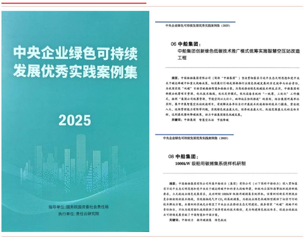 《中船集團(tuán)創(chuàng)新綠色低碳技術(shù)推廣模式 統(tǒng)籌實(shí)施智慧空壓站改造工程》通過系統(tǒng)推進(jìn)智慧空壓站改造,創(chuàng)新“一統(tǒng)籌、三優(yōu)化”模式,大幅提升設(shè)備能效?!吨写瑒?dòng)力1000kW級(jí)船用碳捕集系統(tǒng)樣機(jī)研制》圍繞船用碳捕集關(guān)鍵技術(shù)開展攻關(guān),采用燃燒后復(fù)合胺吸收工藝,實(shí)現(xiàn)CO?捕集率超85%、純度達(dá)99.9%。上述兩項(xiàng)案例入選《中央企業(yè)綠色可持續(xù)發(fā)展優(yōu)秀實(shí)踐案例集(2025)》。