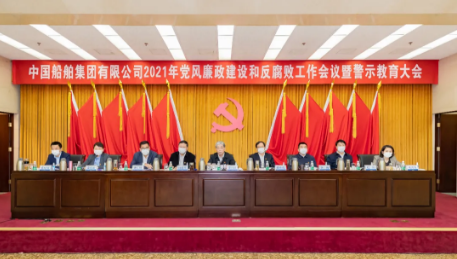 1月29日,中國(guó)船舶集團(tuán)有限公司召開(kāi)2021年黨風(fēng)廉政建設(shè)和反腐敗工作會(huì)議暨警示教育大會(huì),總結(jié)2020年黨風(fēng)廉政建設(shè)和反腐敗工作,開(kāi)展警示教育,部署2021年重點(diǎn)任務(wù)。會(huì)議強(qiáng)調(diào),要以習(xí)近平新時(shí)代中國(guó)特色社會(huì)主義思想為指導(dǎo),全面貫徹落實(shí)習(xí)近平總書(shū)記重要指示,認(rèn)真貫徹落實(shí)黨的十九大和十九屆二中、三中、四中、五中全會(huì)精神,深入貫徹落實(shí)十九屆中央紀(jì)委五次全會(huì)以及國(guó)資委黨風(fēng)廉政建設(shè)和反腐敗工作會(huì)議暨警示教育大會(huì)精神,堅(jiān)決貫徹全面從嚴(yán)治黨方針,充分發(fā)揮全面從嚴(yán)治黨引領(lǐng)保障作用,堅(jiān)定政治方向,保持政治定力,按照態(tài)度不能變、決心不能減、尺度不能松的要求,推進(jìn)黨風(fēng)廉政建設(shè)和反腐敗工作,為集團(tuán)公司實(shí)現(xiàn)“十四五”高質(zhì)量發(fā)展良好開(kāi)局和加快建設(shè)世界一流船舶集團(tuán)提供堅(jiān)強(qiáng)保障,以優(yōu)異成績(jī)慶祝中國(guó)共產(chǎn)黨成立100周年。