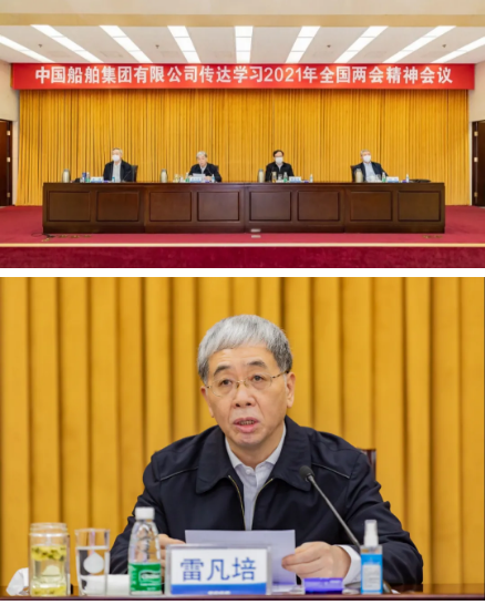 3月12日,中國(guó)船舶集團(tuán)有限公司召開(kāi)會(huì)議,傳達(dá)學(xué)習(xí)習(xí)近平總書(shū)記全國(guó)兩會(huì)期間重要講話精神和全國(guó)兩會(huì)精神,結(jié)合集團(tuán)公司實(shí)際,研究部署貫徹落實(shí)措施。中國(guó)船舶集團(tuán)黨組書(shū)記、董事長(zhǎng)雷凡培出席會(huì)議并講話,黨組副書(shū)記、總經(jīng)理?xiàng)罱鸪芍鞒謺?huì)議,黨組全體成員出席會(huì)議。全國(guó)政協(xié)委員董強(qiáng)在會(huì)上傳達(dá)了全國(guó)政協(xié)十三屆四次會(huì)議精神,全國(guó)人大代表劉征在會(huì)上傳達(dá)了十三屆全國(guó)人大四次會(huì)議精神。