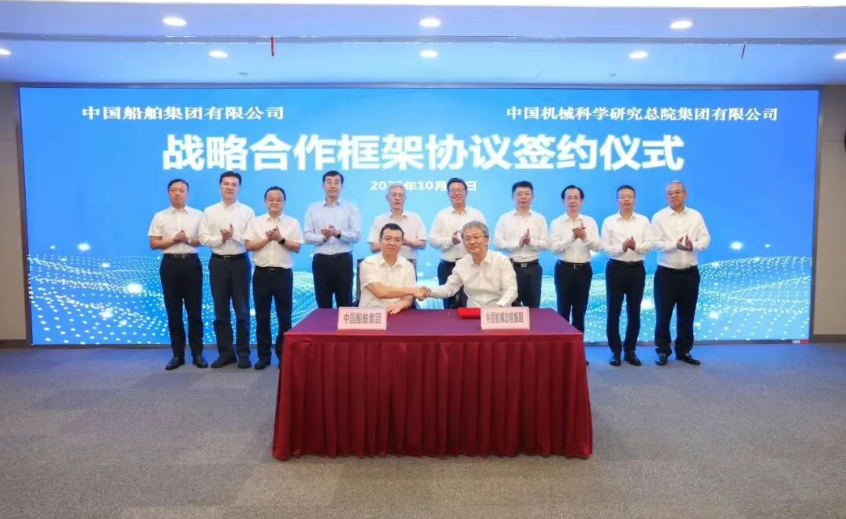10月17日,中國船舶集團有限公司與中國機械科學總院集團有限公司在上海簽署戰(zhàn)略合作框架協(xié)議。中船集團黨組書記、董事長徐鵬,中國機械總院黨委書記、董事長王德成出席簽約儀式。中船集團黨組成員、副總經(jīng)理彭原璞,中國機械總院集團副總經(jīng)理姜超分別代表雙方在協(xié)議上簽字。簽約前,雙方就進一步加強溝通交流、深化多領域合作進行了交流探討。