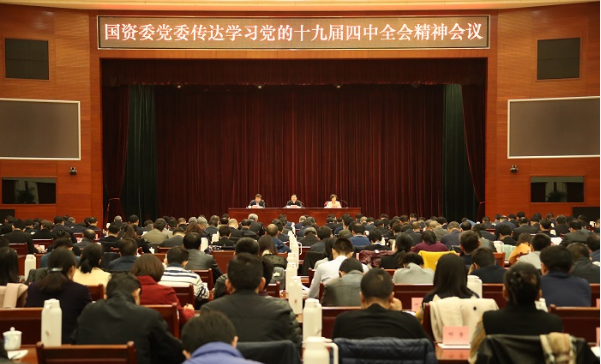 ????11月8日,國資委黨委召開傳達學(xué)習(xí)黨的十九屆四中全會精神會議,對國資委直屬機關(guān)、中央企業(yè)和直管協(xié)會學(xué)習(xí)貫徹落實工作進行部署安排。國資委黨委書記、主任郝鵬結(jié)合參加黨的十九屆四中全會現(xiàn)場聆聽習(xí)近平總書記重要講話的切身體會,結(jié)合國資國企實際作了宣講,強調(diào)要深入學(xué)習(xí)貫徹黨的十九屆四中全會精神特別是習(xí)近平總書記在全會上的重要講話精神,增強“四個意識”、堅定“四個自信”、做到“兩個維護”,切實把思想和行動統(tǒng)一到全會精神上來,進一步完善國資國企制度體系,深化國資國企改革,增強國有經(jīng)濟競爭力、創(chuàng)新力、控制力、影響力、抗風(fēng)險能力,做強做優(yōu)做大國有資本,加快培育具有全球競爭力的世界一流企業(yè),為實現(xiàn)“兩個一百年”奮斗目標、實現(xiàn)中華民族偉大復(fù)興的中國夢作出更大貢獻。國資委副主任、黨委委員趙愛明傳達了全會公報和《中共中央關(guān)于堅持和完善中國特色社會主義制度、推進國家治理體系和治理能力現(xiàn)代化若干重大問題的決定》(以下簡稱《決定》)主要精神。國資委副主任、黨委委員任洪斌主持會議。