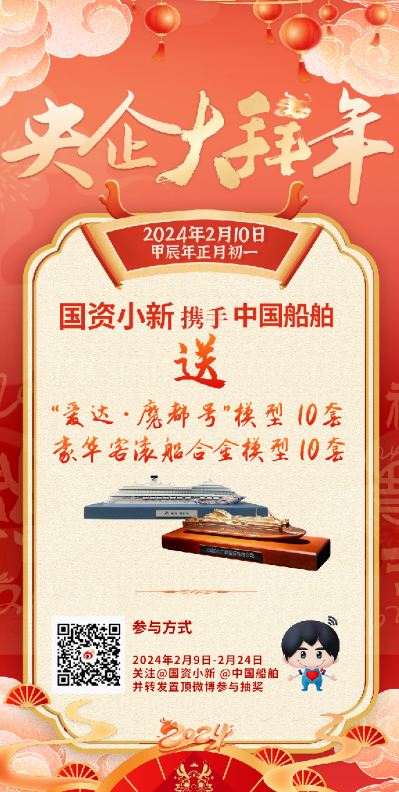 今天,“國(guó)資小新”將攜手中國(guó)船舶抽取20位幸運(yùn)粉絲,送上【“愛(ài)達(dá)·魔都號(hào)”模型、豪華客滾船合金模型】,掃描下圖二維碼,把央企的祝福帶回家!