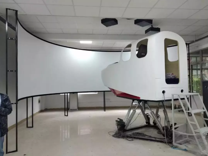 ????該平臺主要由地效翼船駕駛艙、六自由度運動平臺、工控機(jī)、激光高清工程投影機(jī)、180°金屬環(huán)形硬幕、圖像處理器、飛行仿真軟件等組成。駕駛座艙1:1復(fù)制交通運輸部指定的唯一教具——翔州1型地效翼船,在環(huán)境上保持了與真實地效翼船的高度一致,180°金屬環(huán)形硬幕最大程度再現(xiàn)全球各大水域的真實場景,而六自由度運動平臺真實實現(xiàn)了地效翼船升沉、俯仰、滾轉(zhuǎn)等動作,給學(xué)員身臨其境的地效翼船駕控感受。