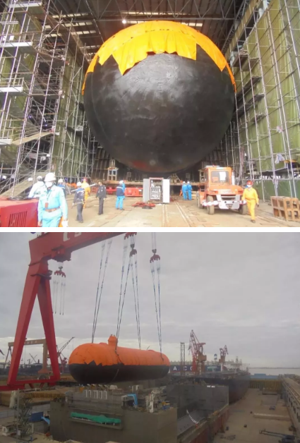 ????最終,江南造船成功完成兩個14000立方米Type C型單體罐駁運(yùn)吊裝任務(wù)。