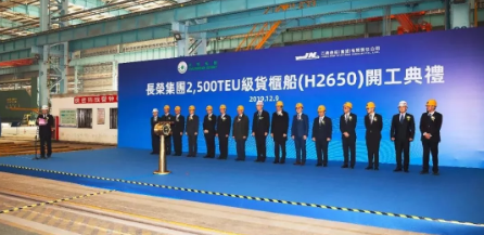 ????中國船舶集團所屬江南造船(集團)有限責(zé)任公司的2500TEU集裝箱船項目是長榮海運首次在中國內(nèi)地訂造新船。該系列船入NK船級社,采用中國船舶集團所屬上海船舶研究設(shè)計院最新優(yōu)化設(shè)計,加裝最新的Scrubber脫硫裝置。該船總長195.00米,垂線間長191.80米,型寬32.25米,型深17.00米,設(shè)計吃水10.00米,結(jié)構(gòu)吃水11.20米,設(shè)計航速不低于20節(jié)(NCR),貨艙內(nèi)集裝箱數(shù)922箱,甲板上集裝箱數(shù)1725 箱,甲板上冷箱數(shù)226箱。該船計劃于2021年交付。