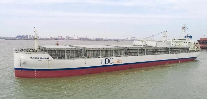 ????該船可以裝載19500立方米橙汁,大約重2萬(wàn)噸,按照和水一樣的密度粗略計(jì)算,以裝滿500毫升一瓶為基準(zhǔn),該船滿載可裝4000萬(wàn)瓶500毫升的橙汁,裝載運(yùn)輸能力超強(qiáng)大!這艘船就好比一個(gè)海上移動(dòng)的“大冰柜”,15個(gè)液貨罐均采用食品級(jí)絕緣不銹鋼材料,可裝載零攝氏度橙汁和零下10攝氏度濃縮橙汁,液貨艙始終保持低溫狀態(tài),確保不受細(xì)菌污染。
