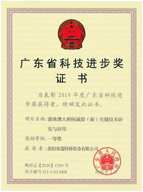 ????雙瑞特裝與港珠澳大橋管理局等9家單位,歷時10年聯(lián)合攻關(guān),創(chuàng)建了超長復雜跨海橋梁減隔震新體系,成功應用于港珠澳大橋,抗震性能從抗7度提高到抗9度,造就了世界超長跨海大橋的減隔震示范工程。