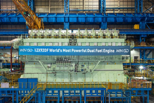 ????作為目前世界最大船用雙燃料低速機(jī),WinGD 12X92DF集超大功率、智能控制、綠色環(huán)保于一體,以?xún)?yōu)異的性能和排放指標(biāo),引領(lǐng)世界同類(lèi)型發(fā)動(dòng)機(jī)。