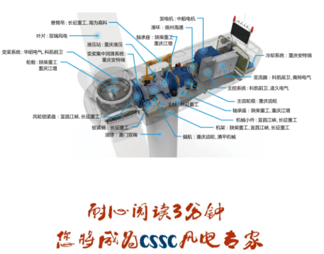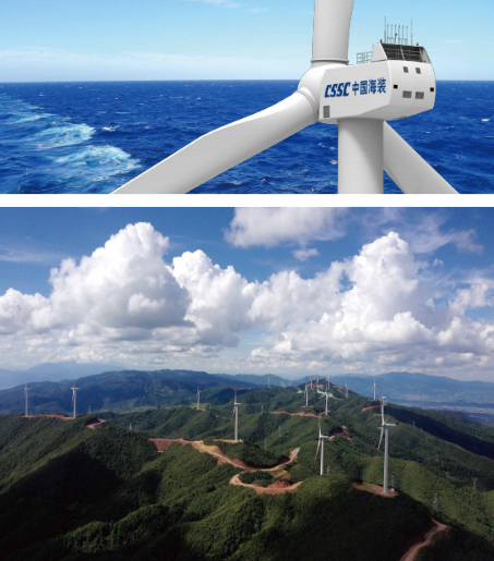 中國船舶集團擁有國內(nèi)實力強勁的自主研發(fā)與生產(chǎn)體系,具備強大的機、電、液、控一體化裝備制造服務(wù)保障能力,形成了從葉片、齒輪箱、發(fā)電機、控制系統(tǒng)到機座、機架、塔筒、輪轂等全系列制造能力,從資源開發(fā)、零部件制造、整機研發(fā)、工程安裝、運維服務(wù)等全產(chǎn)業(yè)鏈保障能力,是我國唯一具備較完整風電裝備研制生產(chǎn)服務(wù)保障體系的專業(yè)化集團。