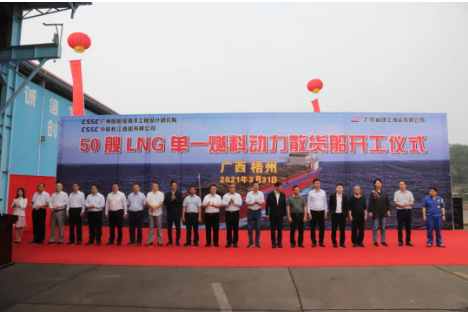 3月31日,中國船舶集團旗下廣州船院協(xié)同中船廣西所屬桂船公司,為珠江海運有限公司設(shè)計建造的液化天然氣(LNG)動力散貨船正式點火開工。