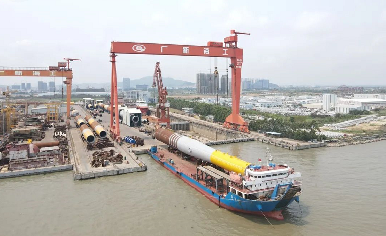 “國家電投揭陽神泉—400MW 海上風(fēng)電項(xiàng)目”首批海上風(fēng)電單樁中的23號(hào)樁交付發(fā)運(yùn),該項(xiàng)目由中國船舶集團(tuán)旗下黃埔文沖下屬文船重工承建。