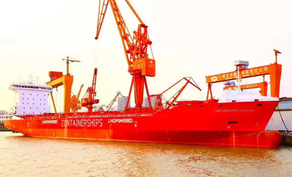 5月12日,黃埔文沖為法國達(dá)飛輪船集團(tuán)建造的1400TEU雙燃料集裝箱“CONTAINERSHIPS STELLAR”號(hào)交付。