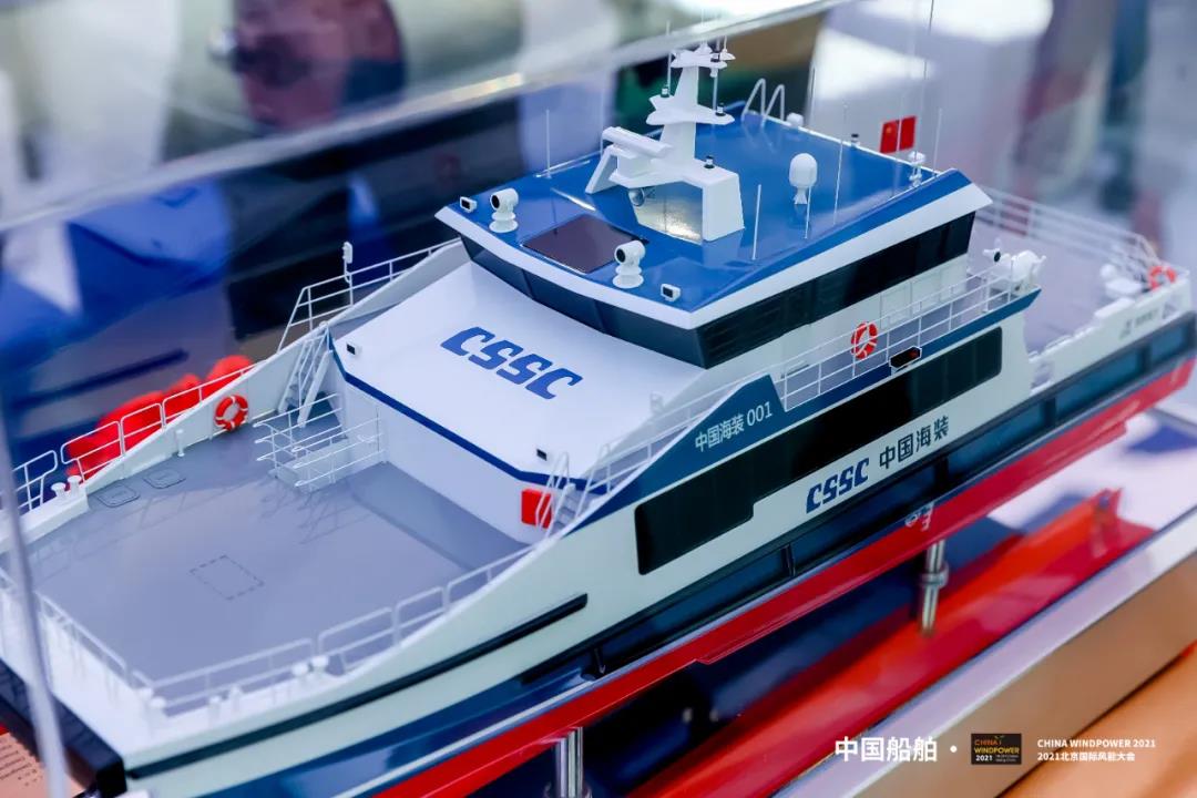 在本屆風能大會上,中國海裝與遠舟科技聯(lián)合設計制造的國內(nèi)首艘30米級專業(yè)風電運維船發(fā)布。投運后,該船將與中船海工101海上風電安裝平臺一道,為海上運維“保駕護航”。