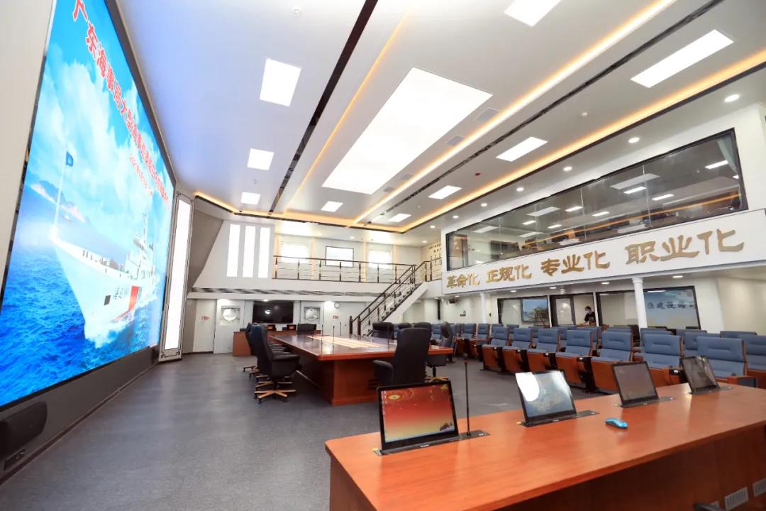 “海巡09”是全球先進(jìn)的海上綜合指揮平臺(tái),建有海上數(shù)據(jù)中心和綜合指揮大廳。綜合指揮大廳最吸引人眼球的就是這一塊長8米、高4.55米的大型LED顯示屏。然而這僅只是“海巡09”指揮系統(tǒng)霸氣的外表。事實(shí)上,它包括了移動(dòng)監(jiān)管指揮平臺(tái)等16個(gè)子系統(tǒng),可以通過與包括北斗在內(nèi)的5套衛(wèi)星系統(tǒng)進(jìn)行數(shù)據(jù)傳輸,實(shí)現(xiàn)海上艦船編隊(duì)自組網(wǎng)和建立數(shù)據(jù)集群,并且網(wǎng)絡(luò)速度可以達(dá)到10兆以上,真正實(shí)現(xiàn)“陸??仗臁币惑w化海事管理。