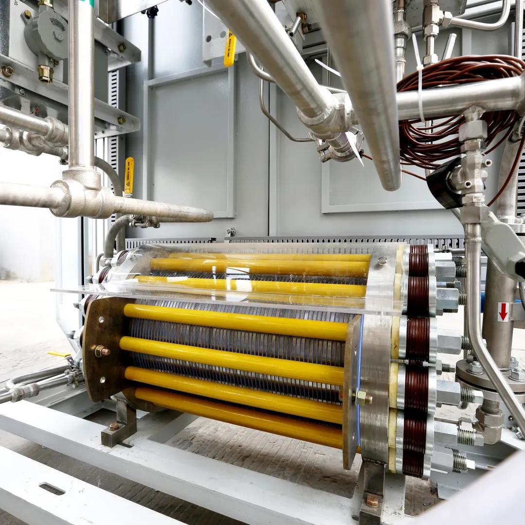 該設(shè)備為雙極壓濾式加壓水電解制氫裝置,能夠高效制取氫氣,能耗低、安全性能優(yōu)越,可年均節(jié)省電費(fèi)百萬元。