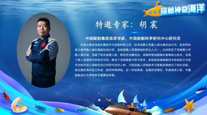 3月22日,由山東省大中小學(xué)海洋文化教育研究指導(dǎo)中心、中國海洋大學(xué)等單位聯(lián)合主辦的“探秘神奇海洋”云端科普活動的重點板塊之一——“深海探索”直播正式開播。中國船舶集團首席專家、中國船舶集團七〇二所研究員胡震在直播間為廣大觀眾答疑解惑,近6萬名觀眾觀看直播并提出了各類關(guān)于深海的問題。